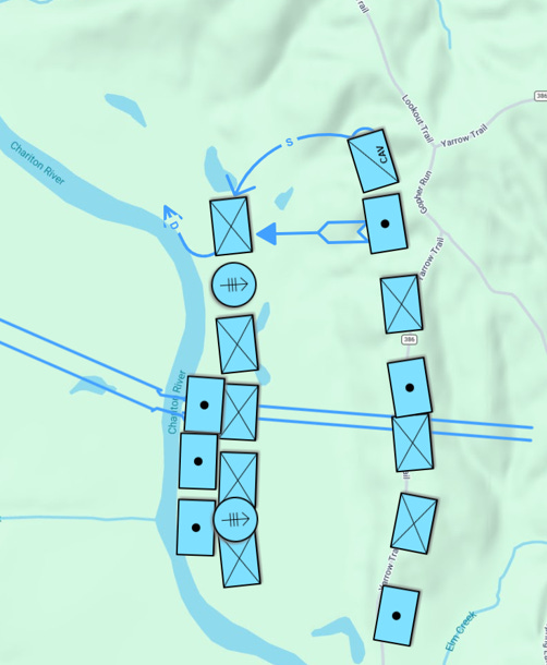 The mountainous coal country that the FSA seeks to capture is an area of few roads, ideally suited to defense, and the military high command is wise enough not to attempt a land invasion. A fleet of ironclads moves down the Big Sandy and Licking Rivers, landing troops to capture coal mines and strategic towns. They face little organized resistance beyond local militias initially, and achieve their goals quickly.